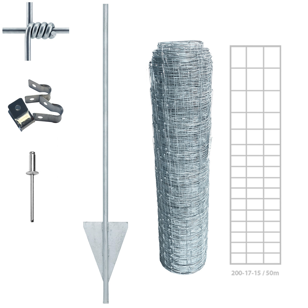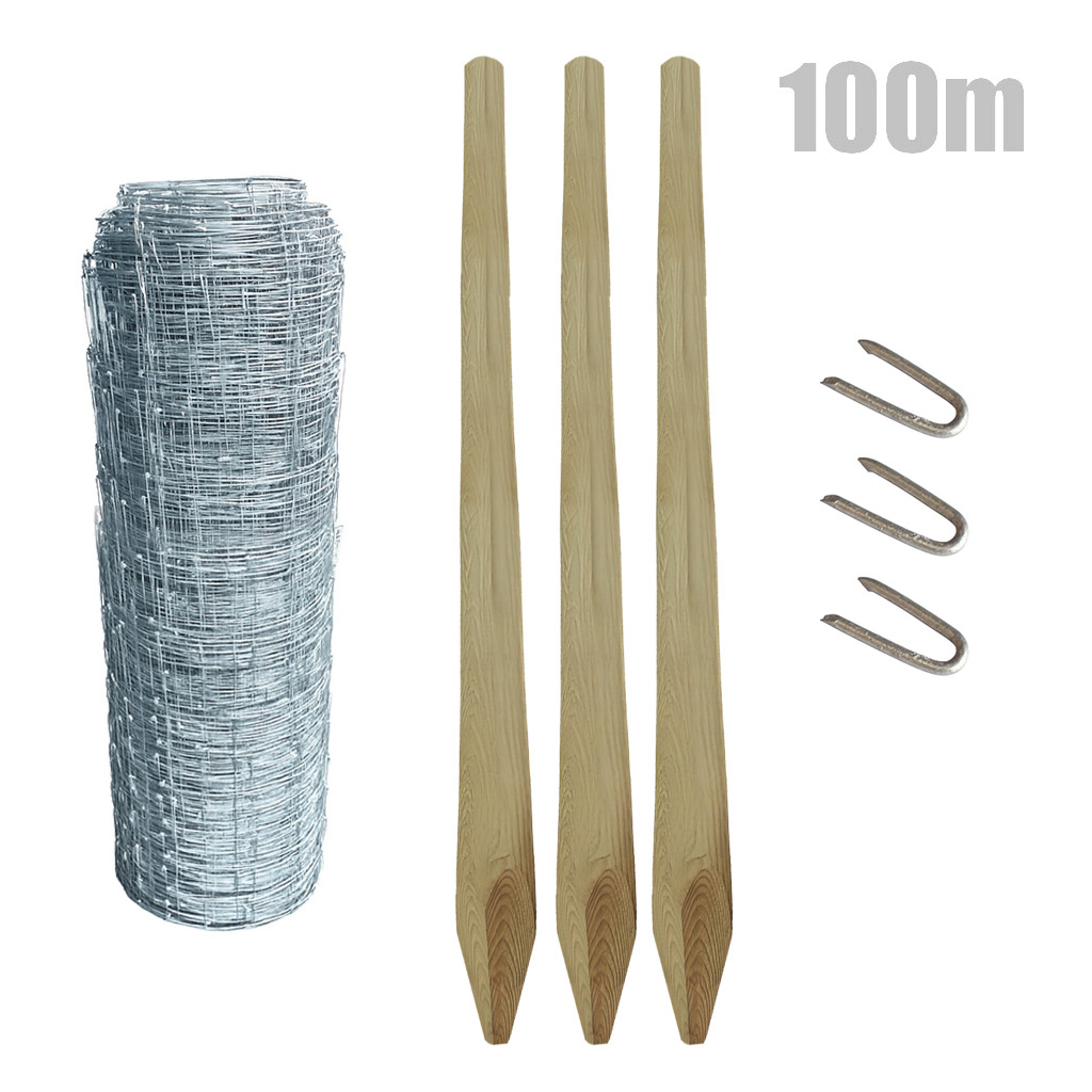 Viltstängselpaket i flera höjder, kompletta med nät, stolpar och fästdetaljer. Anpassade för olika djurtryck och markförhållanden – enkla att montera, hållbara och redo att skydda större eller mindre områden.